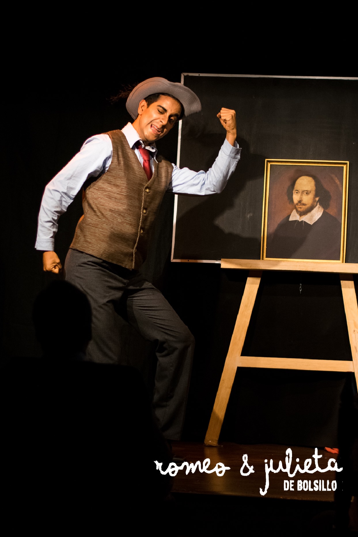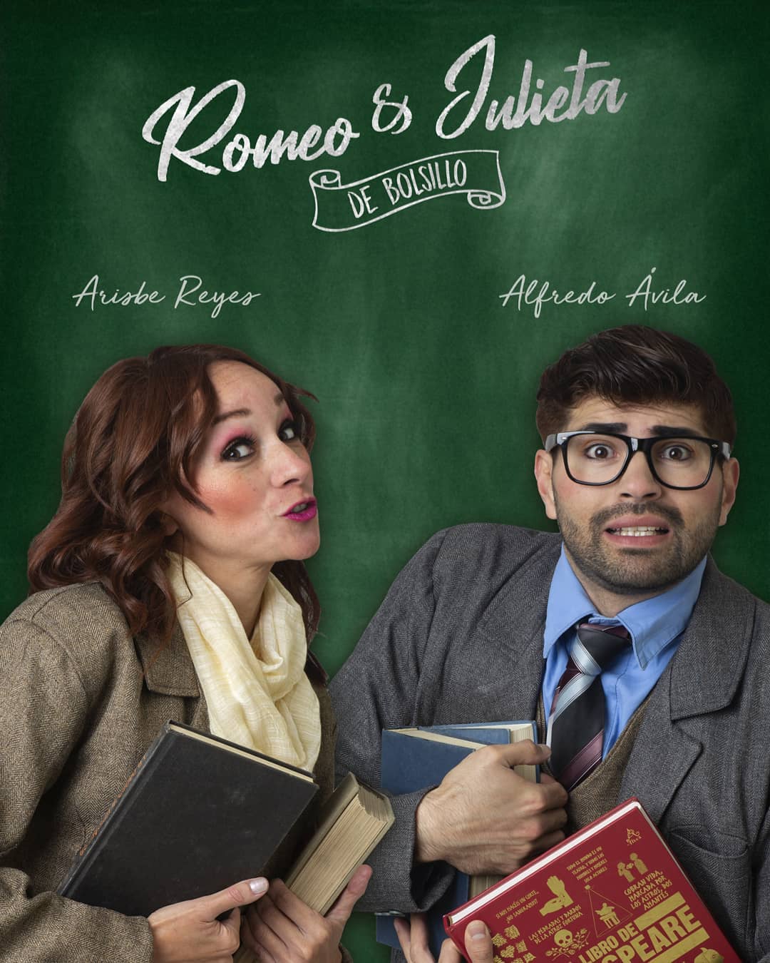 Dos catedráticos nos brindan una clase magistral sobre William Shakespeare, o eso intentan. Detalles sobre la vida y obra del escritor inglés son tema de discusión, y cuando de detalles se trata, nadie mejor que ellos; ¿Cuántas comas utilizó Shakespeare en sus obras? ¿Cuántos puntos? ¿Cuántas veces se menciona a las orejas? ¿Cuántas veces sus personajes hablan de amor? Estos estudiosos parecen no haber dejado recoveco sin analizar, ¿o sí? “Romeo y Julieta” ¿Termina bien o termina mal? Cuando de arte se trata hay tantos puntos de vista como personas… Esta simple pregunta impone a nuestros protagonistas su mayor desafío; representar la obra completa, con todos sus personajes en lo que dura una clase. Tomando lo que encuentran a la mano a modo de utilería y vestuario, nuestros dos “ratones de biblioteca” interpretarán a once encantadores personajes en un Shakespeare ligero, cecano, poético y sobre todo divertido.